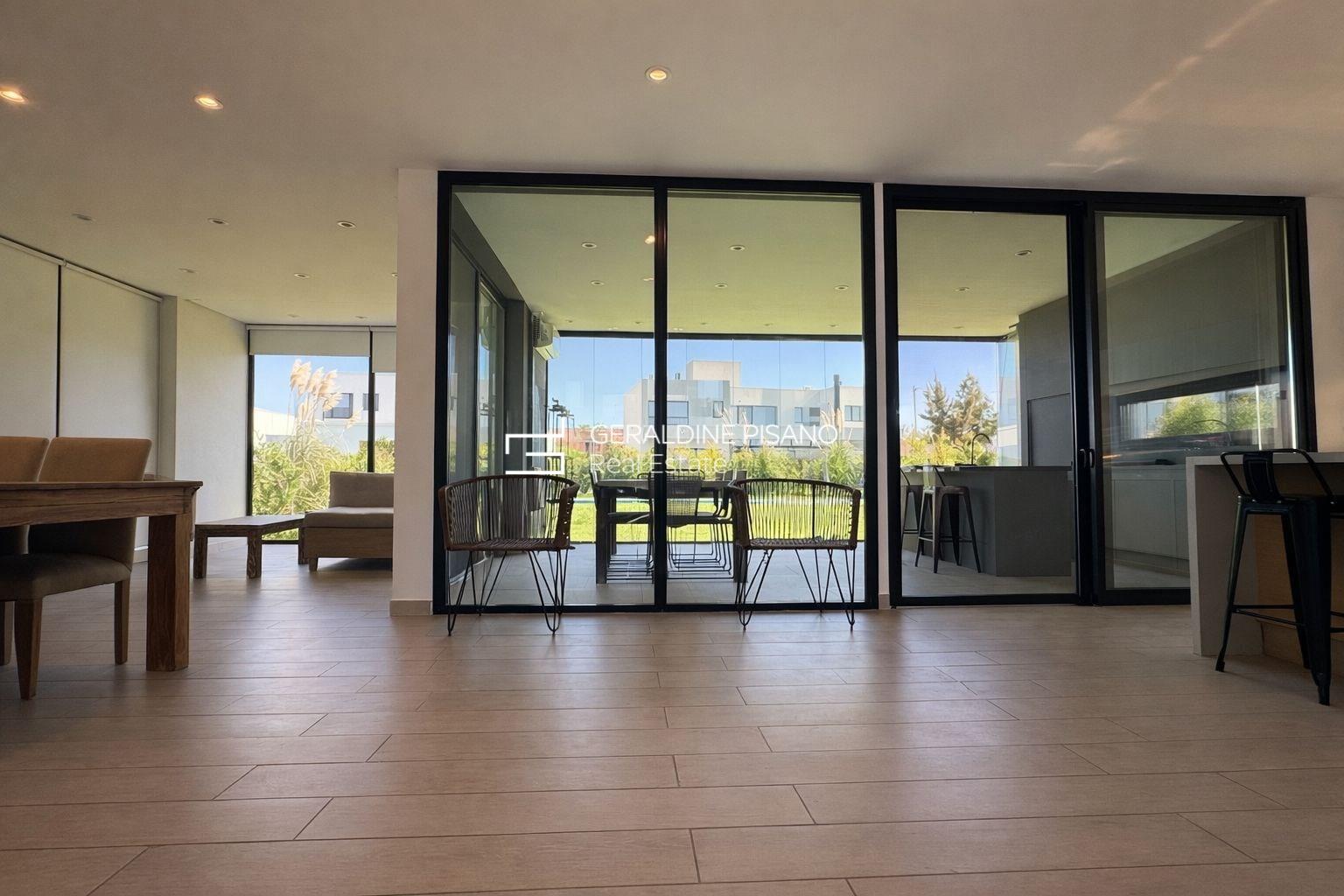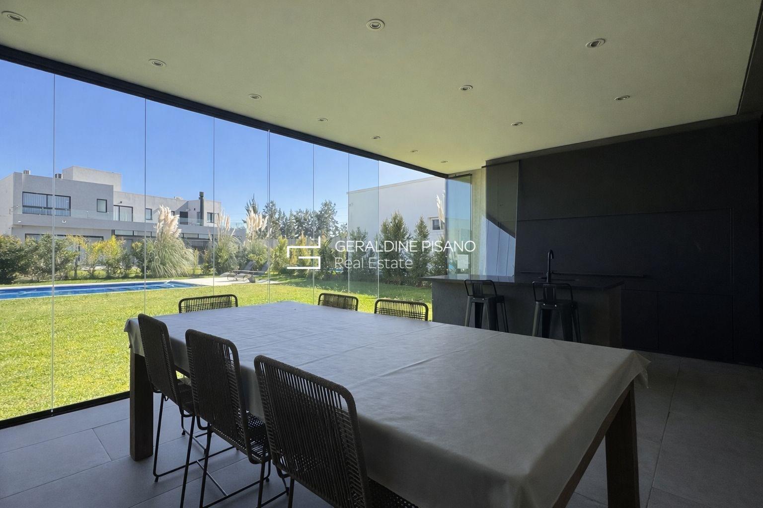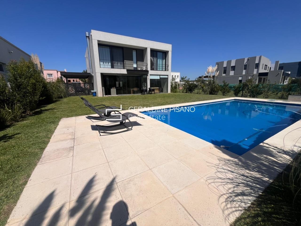 ?? Casa en Alquiler– Diseño moderno, luminosidad y excelente calidad constructiva Propiedad desarrollada en dos plantas, de estilo moderno, con ambientes amplios, funcionales y gran ingreso de luz natural en todos sus espacios. En planta baja se destaca un amplio living comedor integrado, con excelente circulación y vistas abiertas al jardín. Cocina moderna con isla, muy bien equipada, ideal para uso diario y social. Galería cubierta con parrilla, cerramientos de vidrio y conexión directa al exterior, generando un espacio versátil para todo el año. El exterior cuenta con jardín parquizado y pileta de 10x5, logrando una perfecta integración entre interior y exterior. En planta alta se encuentran los dormitorios, todos con muy buena luminosidad. El dormitorio principal cuenta con excelentes visuales, mientras que los dormitorios secundarios ofrecen espacios amplios y funcionales, todos con placares de buen tamaño. Baños completos con diseño moderno y materiales de calidad. La propiedad se caracteriza por: • Excelente entrada de luz natural • Ambientes amplios y bien distribuidos • Detalles modernos y funcionales • Aberturas de gran tamaño • Espacios de guardado optimizados Ideal para quienes buscan una casa cómoda, luminosa y lista para disfrutar.