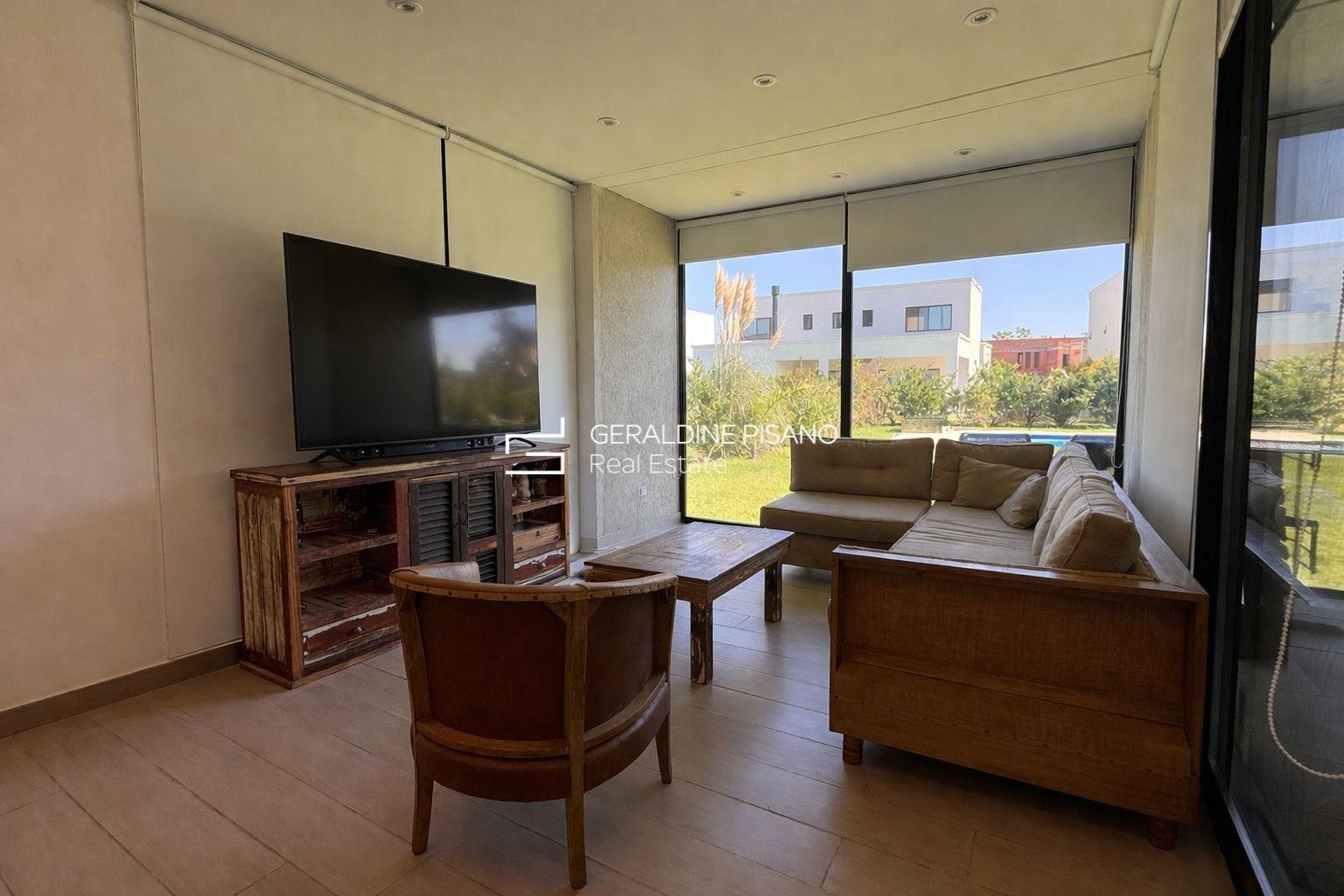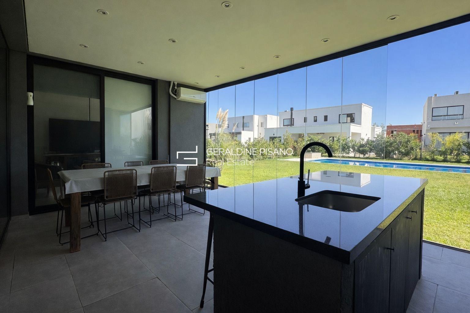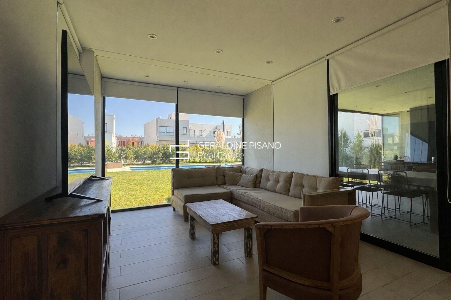 ?? Casa en Alquiler– Diseño moderno, luminosidad y excelente calidad constructiva Propiedad desarrollada en dos plantas, de estilo moderno, con ambientes amplios, funcionales y gran ingreso de luz natural en todos sus espacios. En planta baja se destaca un amplio living comedor integrado, con excelente circulación y vistas abiertas al jardín. Cocina moderna con isla, muy bien equipada, ideal para uso diario y social. Galería cubierta con parrilla, cerramientos de vidrio y conexión directa al exterior, generando un espacio versátil para todo el año. El exterior cuenta con jardín parquizado y pileta de 10x5, logrando una perfecta integración entre interior y exterior. En planta alta se encuentran los dormitorios, todos con muy buena luminosidad. El dormitorio principal cuenta con excelentes visuales, mientras que los dormitorios secundarios ofrecen espacios amplios y funcionales, todos con placares de buen tamaño. Baños completos con diseño moderno y materiales de calidad. La propiedad se caracteriza por: • Excelente entrada de luz natural • Ambientes amplios y bien distribuidos • Detalles modernos y funcionales • Aberturas de gran tamaño • Espacios de guardado optimizados Ideal para quienes buscan una casa cómoda, luminosa y lista para disfrutar.