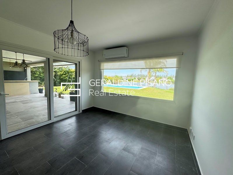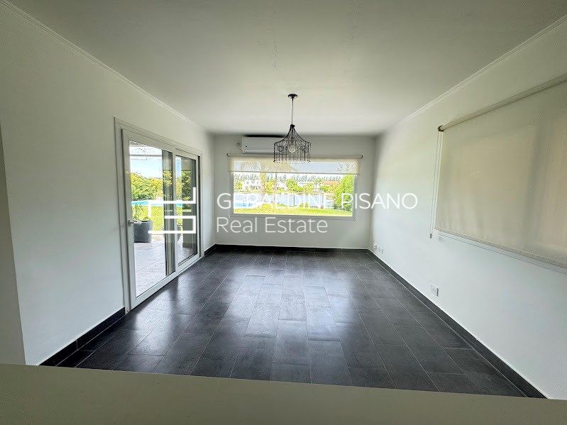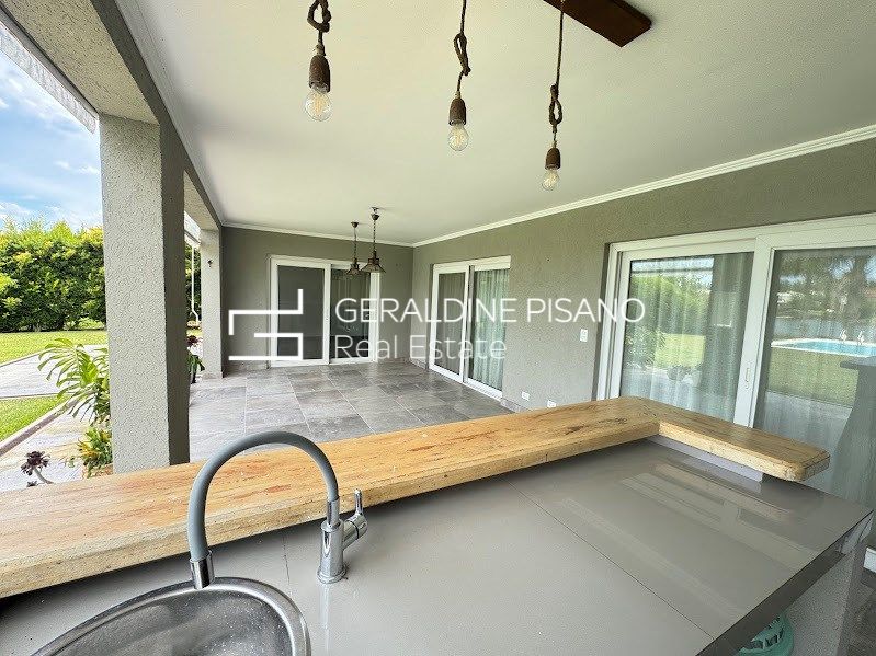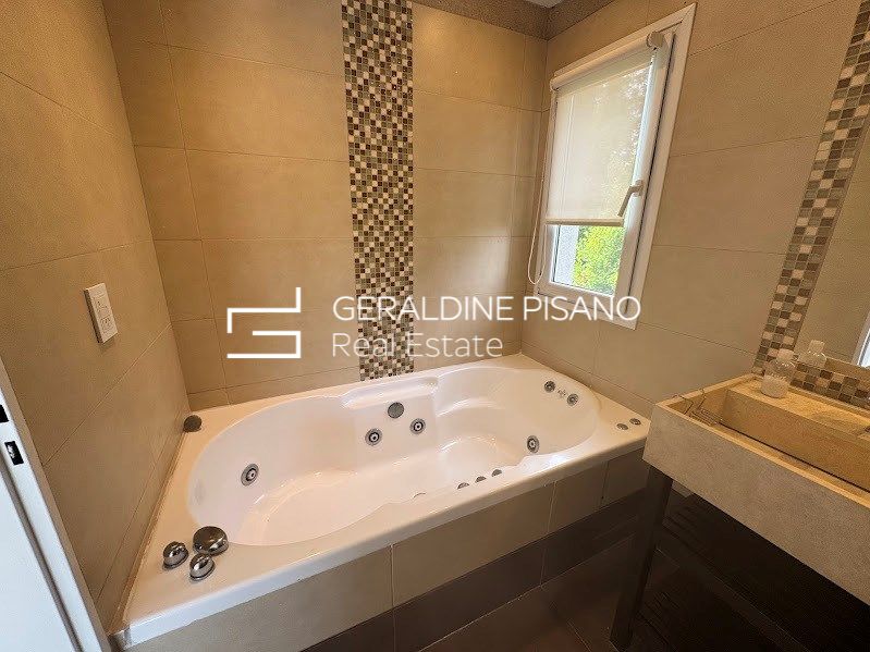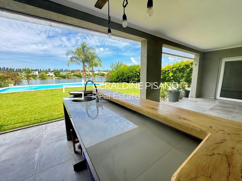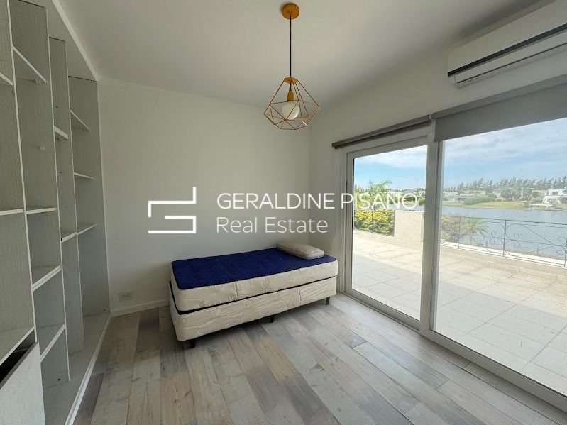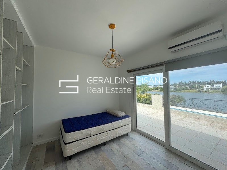 casa en venta con renta en el Barrio Santa Teresa en dos plantas con imponente vista al lago Planta Baja: * Hall de recepción * Living comedor con hogar y salida a galería * Toilette y espacio de guardado * Cocina comedor con salida a galería * Lavadero * Dormitorio de servicio * baño completo de servicio Planta Alta: * Espacio para playroom o escritorio al frente con salida a Balcón * 4 dormitorios en total * 2 en suites; una de ellas con vestidor, baño con hidromasaje y ducha escocesa con salida a terraza y vista a la laguna; el otro con placard y baños completo * 2 dormitorios con placard que comparten un baño completo. Exterior: * Galería con parrilla * Horno empotrado a gas * Barra * Gran jardín parquizado con grama Bahiana, palmeras, cerco perimetral crecido, riego automático * Piscina con venecitas y playa húmeda * Baño de piscina * Fogonero * Gran muela dividido en una parte al aire libre y otra parte techada. * Frente: entrada imperial con espacio para 4 autos más cochera semicubierta para un auto más Todos los ambientes con aire acondicionado, dormitorios con cortinas blackout, living con cortinas de tela. Calefacción por losa radiante con caldera dual. El barrio Santa Teresa posee una gran laguna, cancha de fútbol, plazas de juegos para niños. Otras características: Fue uno de los cuatro barrios protagonistas de un lanzamiento histórico. Con una importante laguna en su interior de 17 hectáreas, este barrio tiene el mejor acceso a la Panamericana de todo el complejo a través de la calle La Bota, por la calle Dean Funes o por Acceso Tigre. A 15 minutos del centro de Tigre, a 2 km de la Panamericana ramal Escobar y a 35 km de Capital Federal. Cercano a la ruta 27, medios de transporte. Servicio de combi Mary Go desde la puerta del barrio hacia diferentes puntos de capital Federal