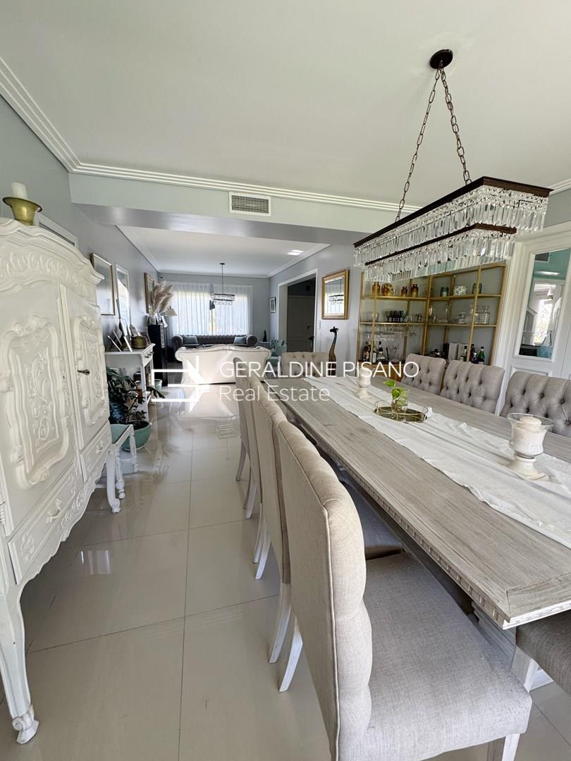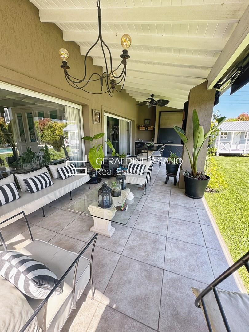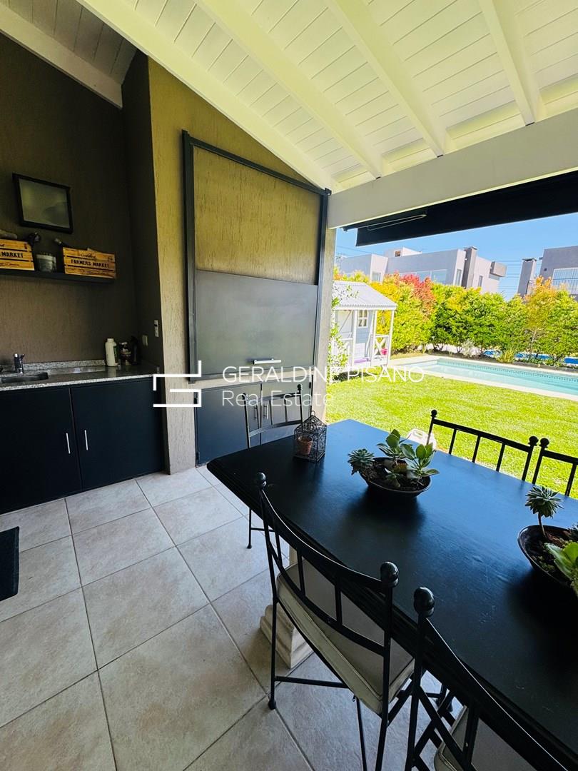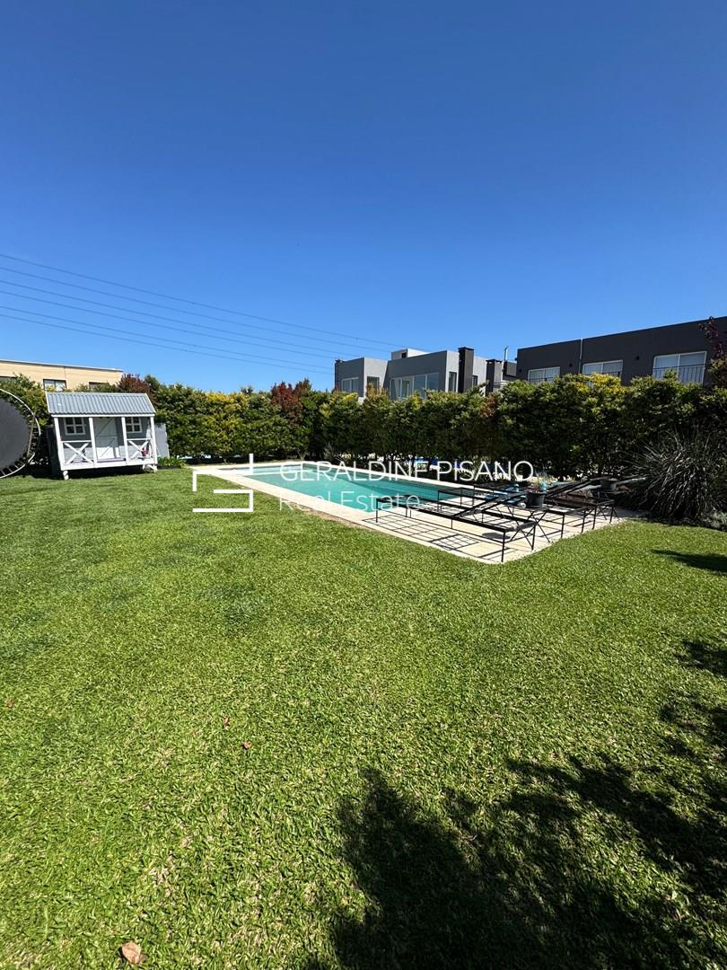 Casa en Venta – Barrio Las Tipas, Nordelta Impecable propiedad de 8 años de antigüedad en perfecto estado, lista para mudarse y disfrutar. Planta baja: Hall de recepción, amplio y luminoso living-comedor con grandes ventanales con salida exterior, cocina comedor diario con isla y cómodo toilette. Dependencia de servicio y lavadero con ingreso independiente desde la cochera. Planta Alta: Play-room o estar de tv muy luminoso y conexión a todos los ambientes. Dormitorio principal en Suite muy espaciosa con vestidor + amplios placares de piso a techo y baño completo compartimentado. Junior suite con vestido y baño completo y otros dos dormitorios con grandes placares, ventanales y baño completo compartido. Todos muy luminosos. Exterior: Amplia galería parrilla y espacio para living exterior. Excelente jardín parquizado con gran bahiana con sistema de riego automático. Piscina revestida en pool-stone de 8x3.5 + solarium, Espacio para estacionar 4 vehículos. Cochera con pérgola techada con chapa de policarbonato. Sistema de climatización central Surrey (frío eléctrico y calefacción a gas). Amplios ventanales de PVC con DVH (doble vidrio hermético) en todos sus amientes. Pisos de porcelanato de excelente calidad en PB y PA. El Barrio: Cuenta con una gran laguna en su entrada. Seguridad con monitoreo permanente. Espacios de recreación para niños y adultos. Un lugar bien diseñado para el confort y disfrute de toda la familia. Amenities: Club House con piscina. Canchas de tenis. Canchas de fútbol. Plazas con juegos para niños. PLUS IMPORTANTE: El barrio cuenta con acceso directo con biometría al COLEGIO NORTHFIELDS.