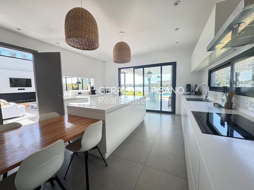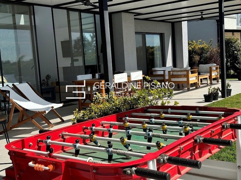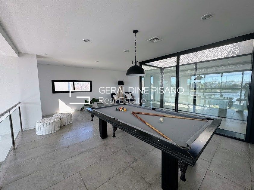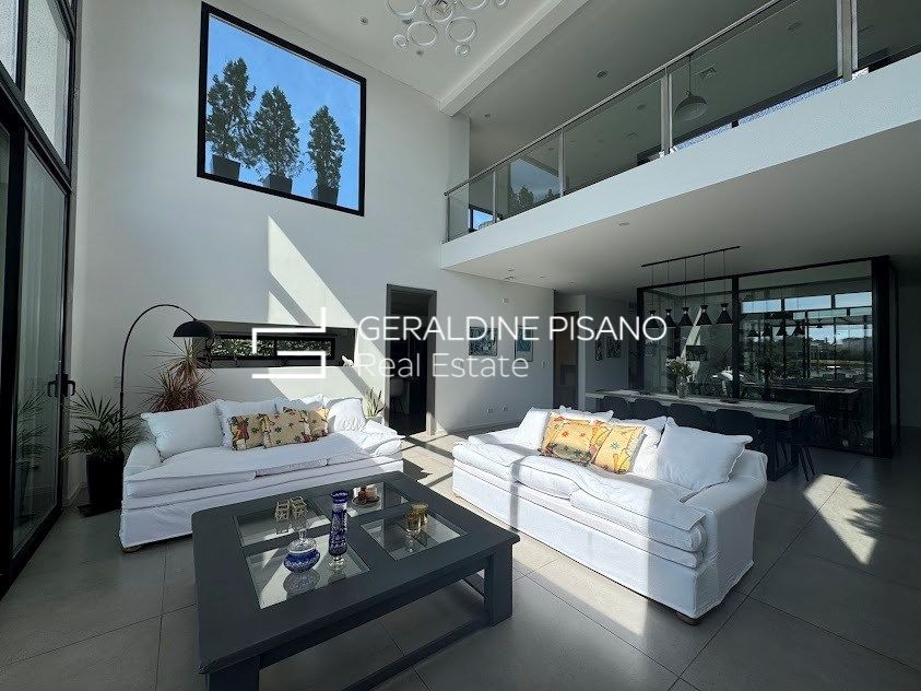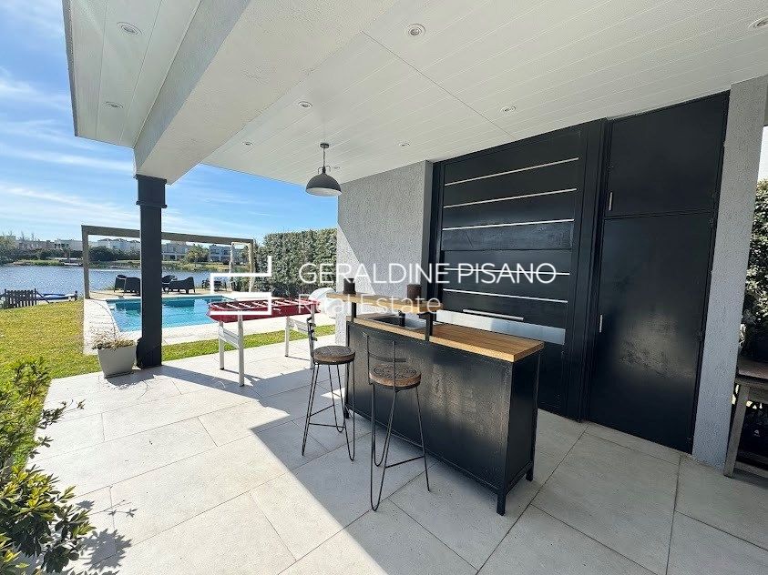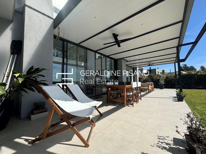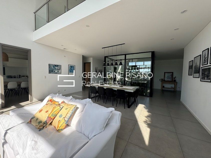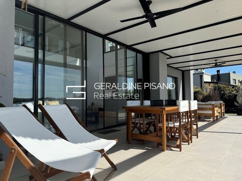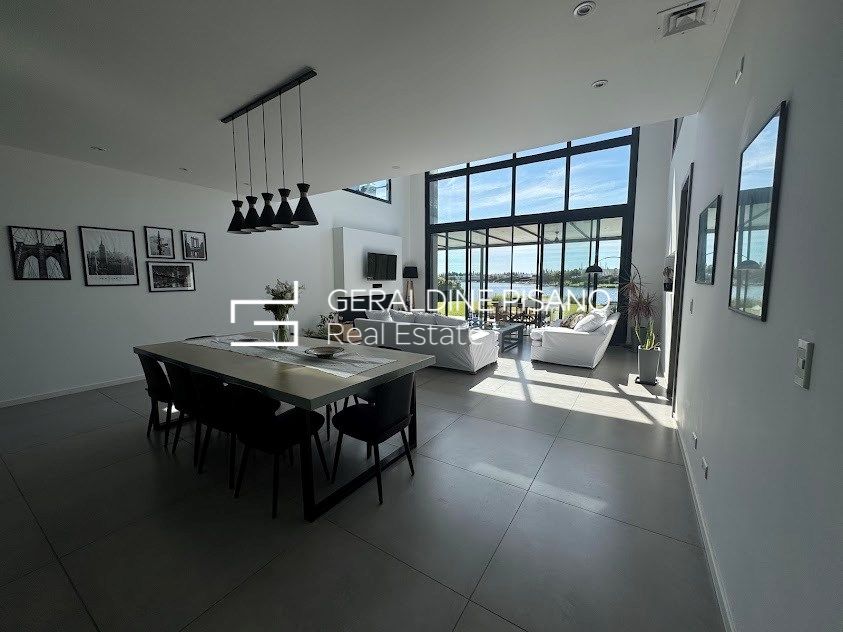 Imponente casa en venta en dos plantas en el Barrio Santa Teresa con vista abierta a la laguna. Planta baja: *Jardin de luz *Living comedor con hogar *espacios del living con doble altura y grandes ventanales *Toilette *Espacio de guardado *Gran cocina comedor con dos mesadas en silestone, espacios de guardado e isla grande *Lavadero con entrada independiente *2 Dormitorios en suite - el principal de grandes dimensiones con vestidor cerrado, y con vista abierta a la laguna -el 2do dormitorio en suite con gran placard Planta Alta: *Hall de distribución con playroom y sala de juegos con balcon hacia el living *2 dormiorios con placard *1 baño completo *2 terrazas Exterior: * galeria en L con living, barra, parrilla *Piscina *baño de Piscina *Camastros *Fogonero *salida a la laguna *Muelle con iluminación *Riego por aspersion *grama bahiana Cochera semicubierta para dos vehiculos y descubierta para cuatro vehiculos mas La propiedad posee Abertuas DVH, calefaccion central, ventiladores de techo en los dormitorios + aire acondicionado en todos los ambientes. La construcción es en Steel Framing