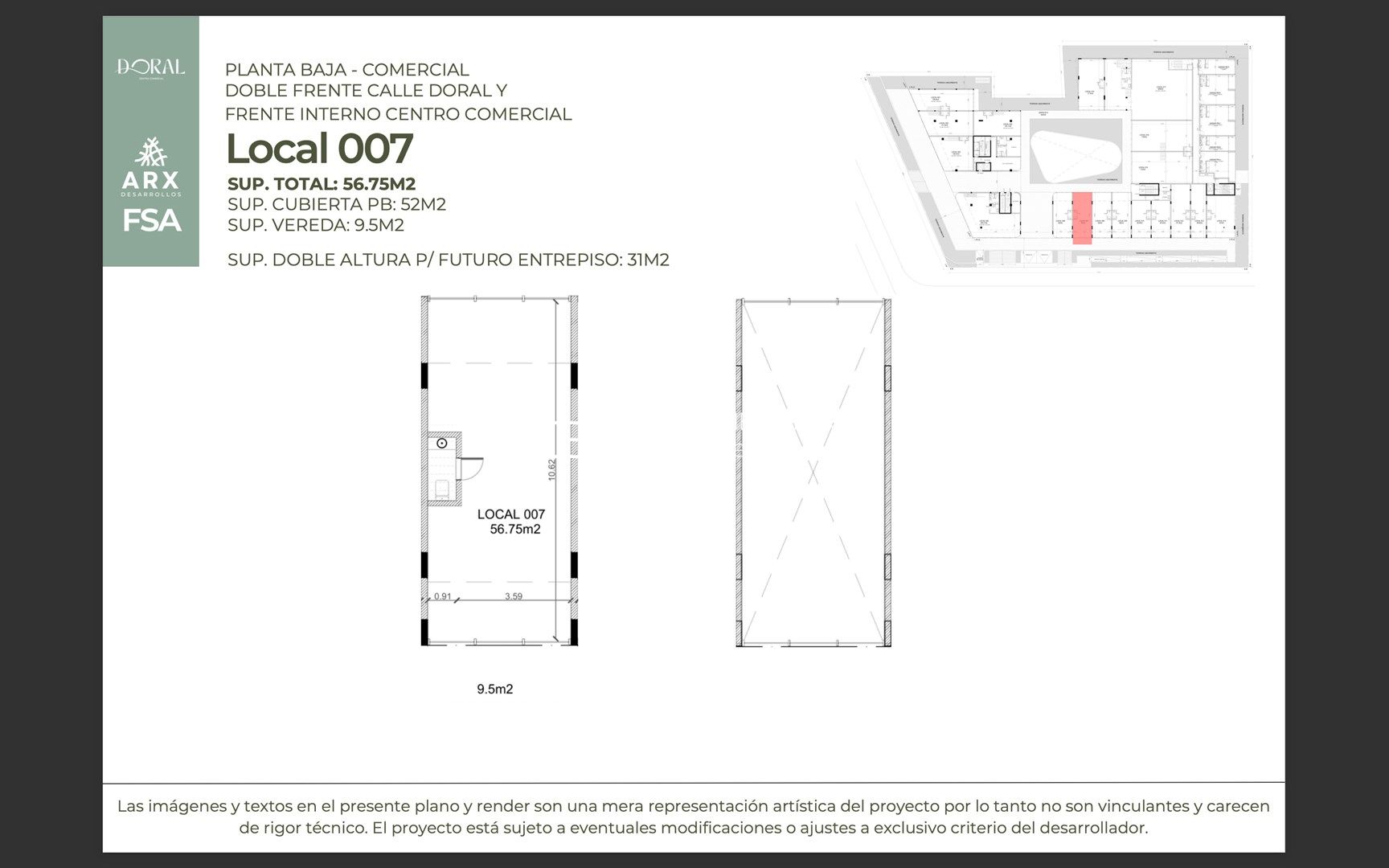 El Doral es un desarrollo innovador que combina residencias, oficinas y locales comerciales en una ubicación estratégica: sobre Av. Italia, a metros de Nordelta y Villanueva. Un lugar pensado para quienes buscan equilibrio entre tranquilidad y conexión, en una zona que crece de manera sostenida y proyecta convertirse en uno de los nuevos polos urbanos del corredor Norte. El proyecto integra: Locales comerciales en planta baja y primer piso, con frentes sobre Av. Italia, calle Doral y el interior del complejo. Departamentos y lofts residenciales, ideales para vivir o invertir en renta. Oficinas y espacios corporativos en torre, con vistas abiertas y máxima conectividad. Áreas gastronómicas destacadas, como un rooftop bar con terraza panorámica y locales con doble altura y pileta. Además, cuenta con más de 600 cocheras, amplias terrazas de uso social, diseño moderno con frentes vidriados y detalles que potencian tanto la vida cotidiana como la actividad comercial. La entrega está prevista para diciembre 2027, con una propuesta de financiación simple: 30% de anticipo y 36 cuotas fijas. Doral CC es más que un edificio: es la posibilidad de vivir, trabajar e invertir en el corazón del nuevo eje urbano del norte de Buenos Aires.