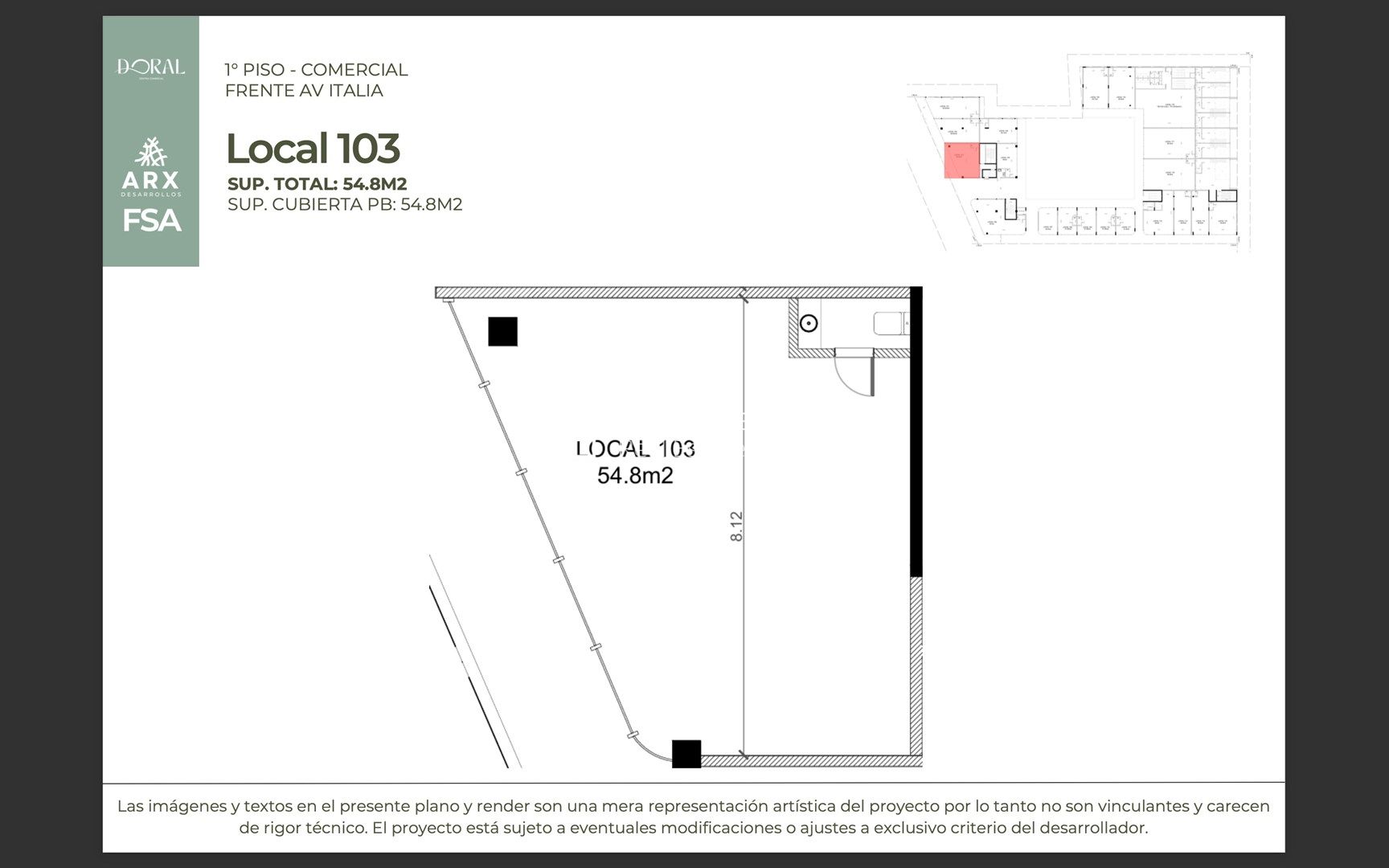 El Doral es un desarrollo innovador que combina residencias, oficinas y locales comerciales en una ubicación estratégica: sobre Av. Italia, a metros de Nordelta y Villanueva. Un lugar pensado para quienes buscan equilibrio entre tranquilidad y conexión, en una zona que crece de manera sostenida y proyecta convertirse en uno de los nuevos polos urbanos del corredor Norte. El proyecto integra: Locales comerciales en planta baja y primer piso, con frentes sobre Av. Italia, calle Doral y el interior del complejo. Departamentos y lofts residenciales, ideales para vivir o invertir en renta. Oficinas y espacios corporativos en torre, con vistas abiertas y máxima conectividad. Áreas gastronómicas destacadas, como un rooftop bar con terraza panorámica y locales con doble altura y pileta. Además, cuenta con más de 600 cocheras, amplias terrazas de uso social, diseño moderno con frentes vidriados y detalles que potencian tanto la vida cotidiana como la actividad comercial. La entrega está prevista para diciembre 2027, con una propuesta de financiación simple: 30% de anticipo y 36 cuotas fijas. Doral CC es más que un edificio: es la posibilidad de vivir, trabajar e invertir en el corazón del nuevo eje urbano del norte de Buenos Aires.