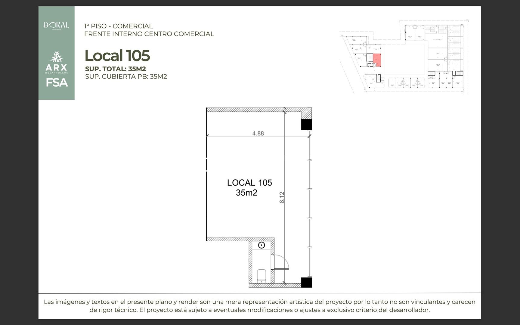 El Doral es un desarrollo innovador que combina residencias, oficinas y locales comerciales en una ubicación estratégica: sobre Av. Italia, a metros de Nordelta y Villanueva. Un lugar pensado para quienes buscan equilibrio entre tranquilidad y conexión, en una zona que crece de manera sostenida y proyecta convertirse en uno de los nuevos polos urbanos del corredor Norte. El proyecto integra: Locales comerciales en planta baja y primer piso, con frentes sobre Av. Italia, calle Doral y el interior del complejo. Departamentos y lofts residenciales, ideales para vivir o invertir en renta. Oficinas y espacios corporativos en torre, con vistas abiertas y máxima conectividad. Áreas gastronómicas destacadas, como un rooftop bar con terraza panorámica y locales con doble altura y pileta. Además, cuenta con más de 600 cocheras, amplias terrazas de uso social, diseño moderno con frentes vidriados y detalles que potencian tanto la vida cotidiana como la actividad comercial. La entrega está prevista para diciembre 2027, con una propuesta de financiación simple: 30% de anticipo y 36 cuotas fijas. Doral CC es más que un edificio: es la posibilidad de vivir, trabajar e invertir en el corazón del nuevo eje urbano del norte de Buenos Aires.