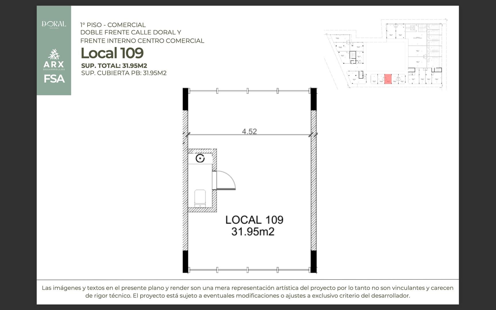 El Doral es un desarrollo innovador que combina residencias, oficinas y locales comerciales en una ubicación estratégica: sobre Av. Italia, a metros de Nordelta y Villanueva. Un lugar pensado para quienes buscan equilibrio entre tranquilidad y conexión, en una zona que crece de manera sostenida y proyecta convertirse en uno de los nuevos polos urbanos del corredor Norte. El proyecto integra: Locales comerciales en planta baja y primer piso, con frentes sobre Av. Italia, calle Doral y el interior del complejo. Departamentos y lofts residenciales, ideales para vivir o invertir en renta. Oficinas y espacios corporativos en torre, con vistas abiertas y máxima conectividad. Áreas gastronómicas destacadas, como un rooftop bar con terraza panorámica y locales con doble altura y pileta. Además, cuenta con más de 600 cocheras, amplias terrazas de uso social, diseño moderno con frentes vidriados y detalles que potencian tanto la vida cotidiana como la actividad comercial. La entrega está prevista para diciembre 2027, con una propuesta de financiación simple: 30% de anticipo y 36 cuotas fijas. Doral CC es más que un edificio: es la posibilidad de vivir, trabajar e invertir en el corazón del nuevo eje urbano del norte de Buenos Aires.