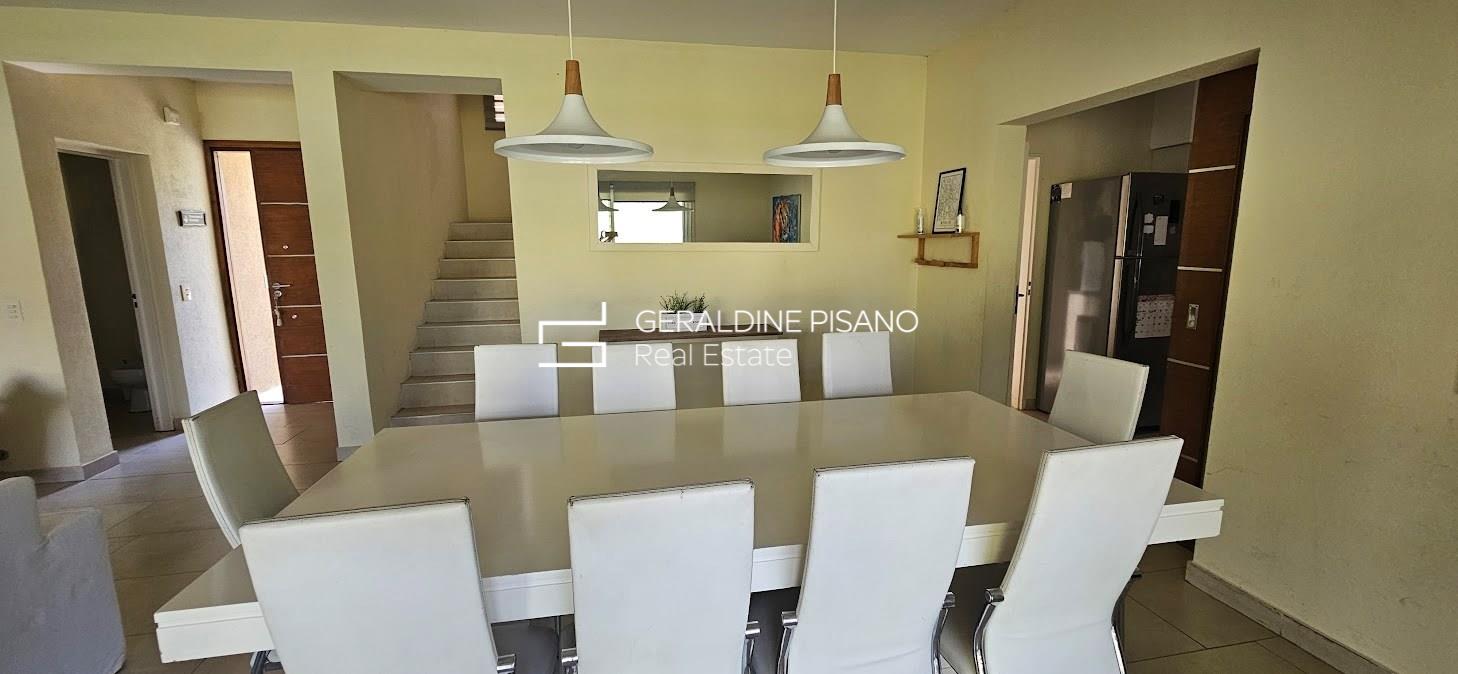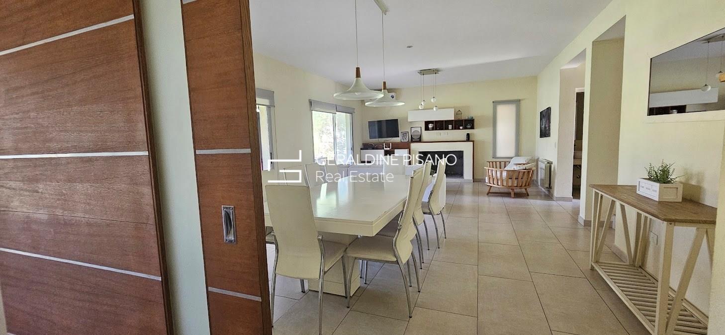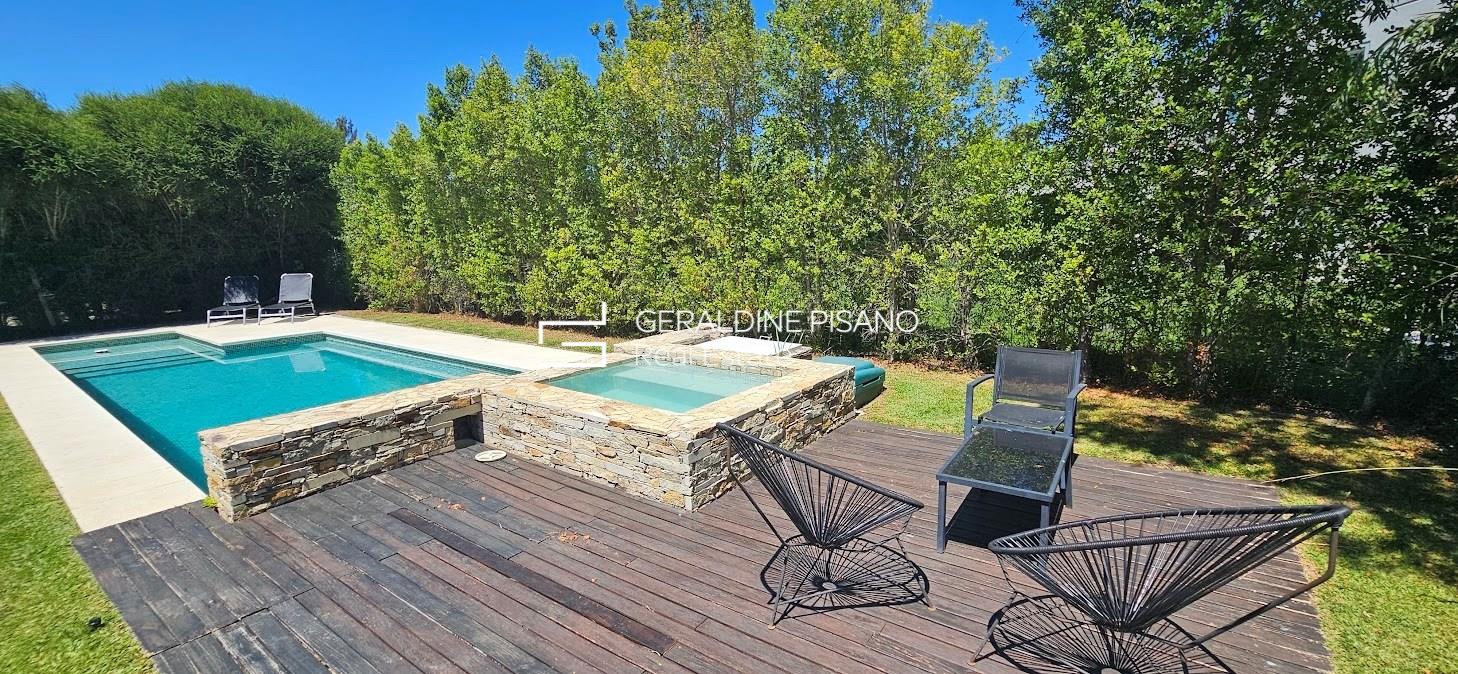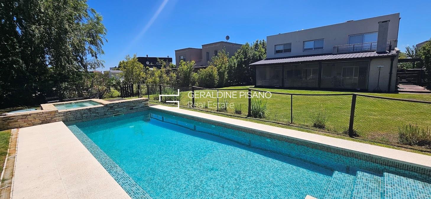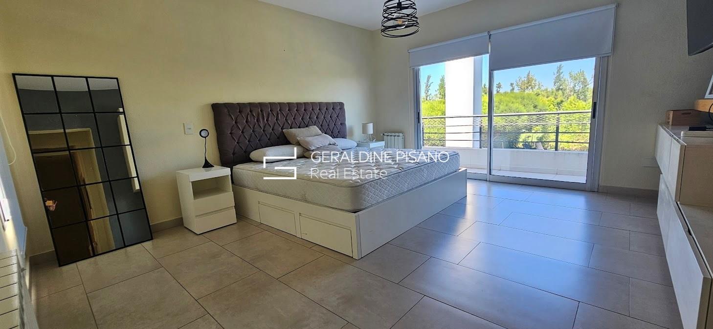 ALQUILER AMUEBLADO EN SAN RAFAEL VILLANUEVA LOTE INTERNO Casa en muy buen estado, estilo racionalista/ moderna. Amplio living comedor con hogar de fuego, aberturas DVH doble vidrio en toda la casa Cocina comedor con gran barra, competamente equipada, heladera doble. Galeria con parrilla y sector de living, jardín parquizado con cerco tupido, arco de fútbol Piscina a nuevo de 10 mts con playa humeda e hidro. Siute ppal de gran tamamaño , con muy buen vestidor, terraza con vistas al jardin. Dos amplios dormitorios que comparten baño completo. camas para 6 personas Lavadero con salida independiente, habitación de servicio con baño radiadores en toda la casa, y equipos A.A. en todos los ambientes. Cochera techada. Completamente equipada, lista para entrar ya, Vamos a Verla! El Barrio san Rafael es de los mas buscados por su ubicación, salidas rapidas a los accesos, gran tranquilidad, y casas modernas No hay torres de alta tension en el barrio. Cercania a colegios y centros comerciales. La mejor zona! expensas muy razonables!