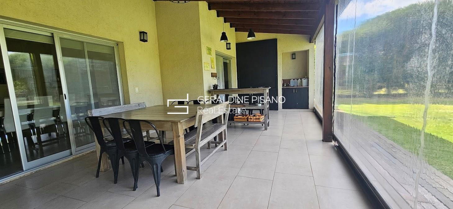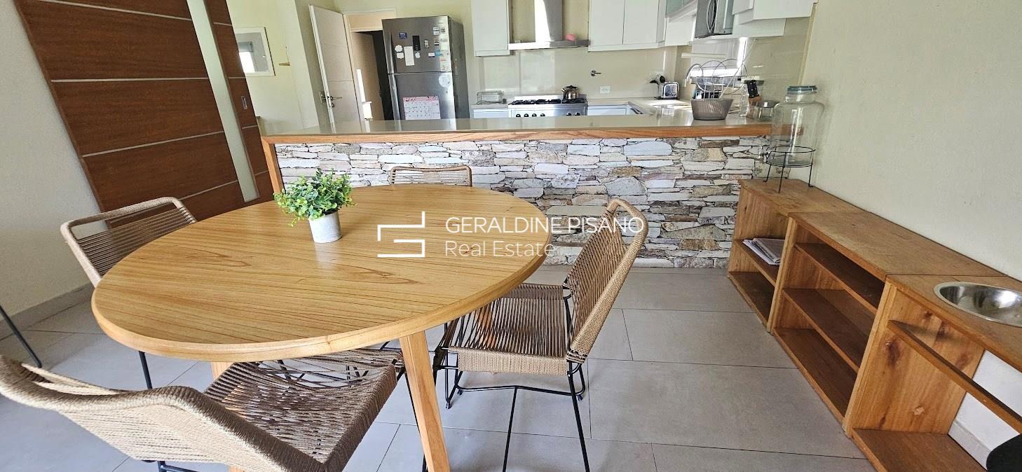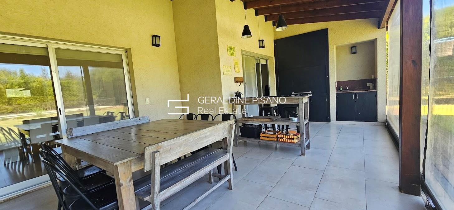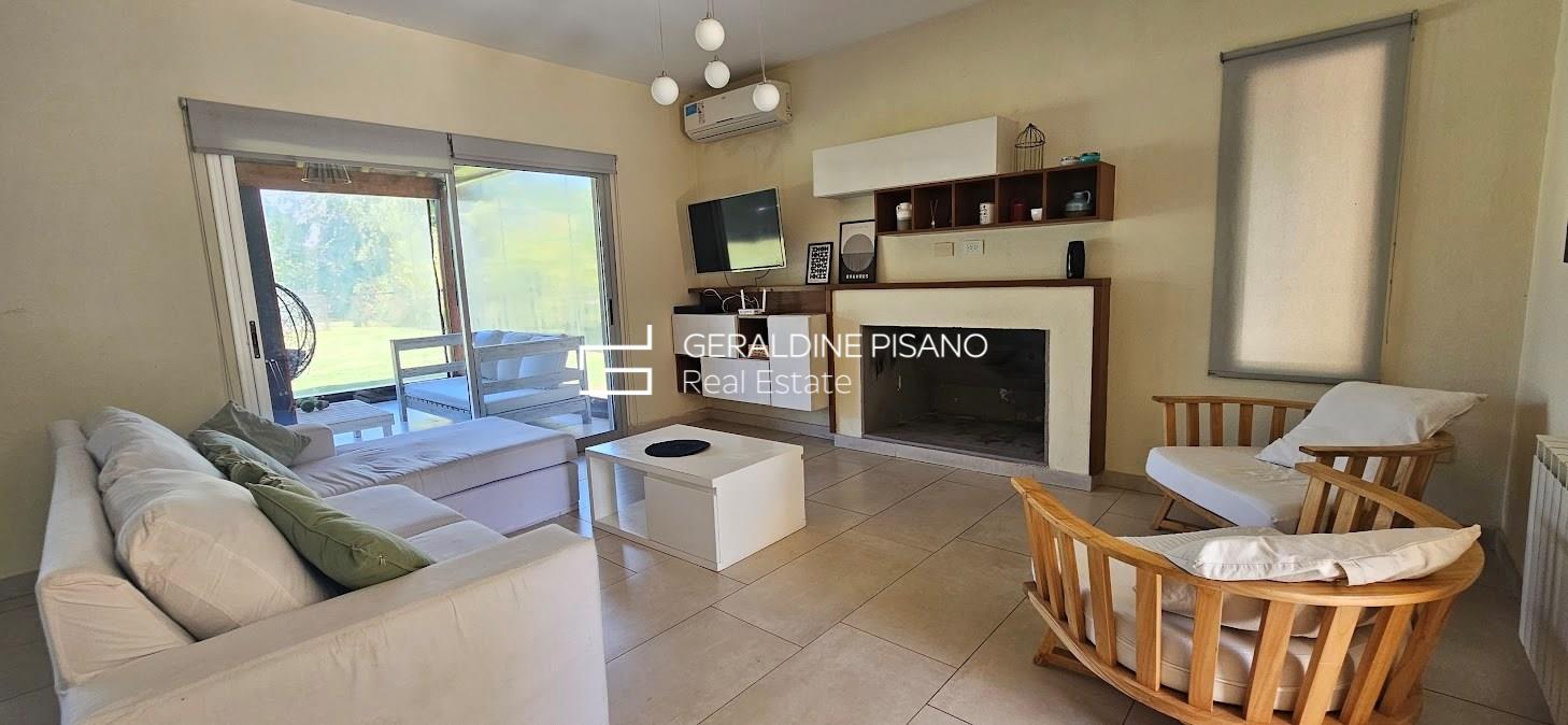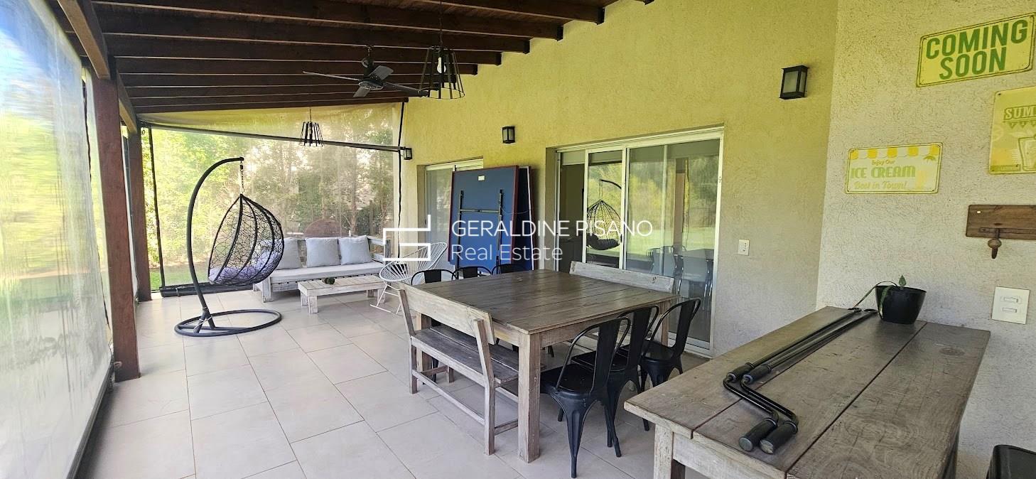 ALQUILER AMUEBLADO EN SAN RAFAEL VILLANUEVA LOTE INTERNO Casa en muy buen estado, estilo racionalista/ moderna. Amplio living comedor con hogar de fuego, aberturas DVH doble vidrio en toda la casa Cocina comedor con gran barra, competamente equipada, heladera doble. Galeria con parrilla y sector de living, jardín parquizado con cerco tupido, arco de fútbol Piscina a nuevo de 10 mts con playa humeda e hidro. Siute ppal de gran tamamaño , con muy buen vestidor, terraza con vistas al jardin. Dos amplios dormitorios que comparten baño completo. camas para 6 personas Lavadero con salida independiente, habitación de servicio con baño radiadores en toda la casa, y equipos A.A. en todos los ambientes. Cochera techada. Completamente equipada, lista para entrar ya, Vamos a Verla! El Barrio san Rafael es de los mas buscados por su ubicación, salidas rapidas a los accesos, gran tranquilidad, y casas modernas No hay torres de alta tension en el barrio. Cercania a colegios y centros comerciales. La mejor zona! expensas muy razonables!