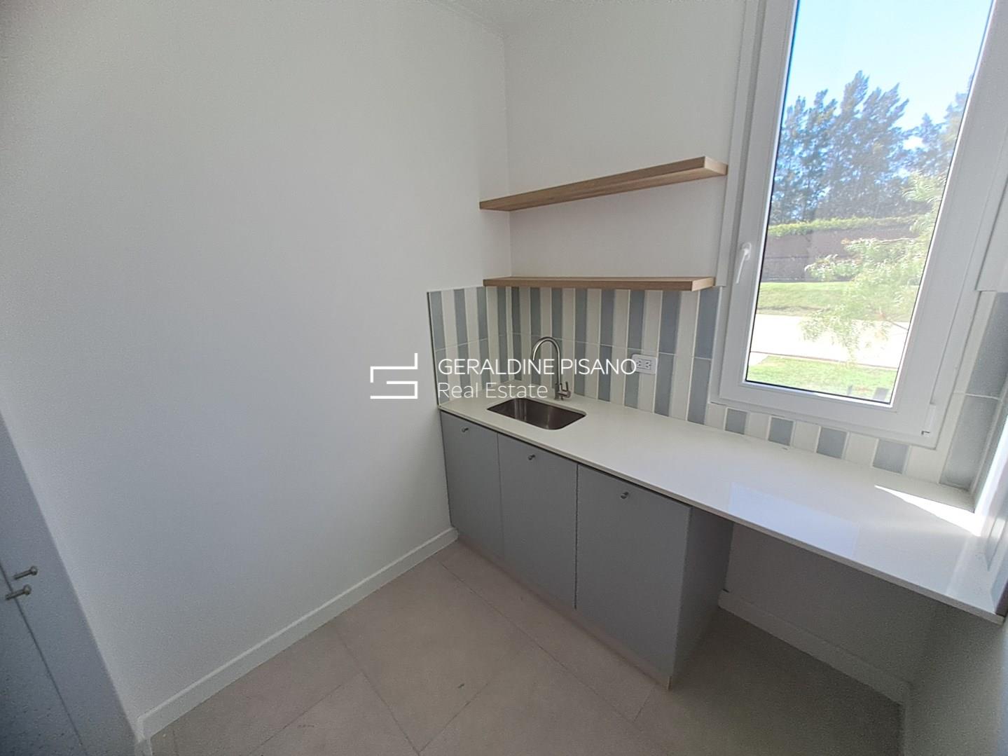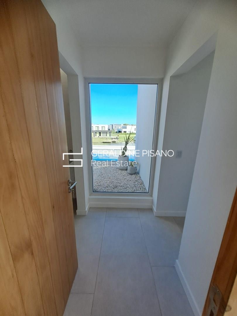 Hermosa casa a estrenar desarrollada por Grupo Pauta - PB: hall de recepcion - toillete - cocina con doble circulacion e isla central - Living comedor - escritorio con baño y area de servicios - Galeria con Parrilla - Jardin - espacio guarda coches PA: 3 habitaciones. 1 en suite y 2 en semi suite Sistema de calefaccion por losa radiante - pisos porcelanato marca ILVA (Tribeca concrete Greenwich 1,20 x 0.60) - mesadas Sotne Quartz (blanco norte) - Griferias marca Peirano - Pileta cocina y lavadero marca Johnson (ZN52) - Preinstalacion para aires acondicionados (7) - molduras interiores en cielorrasos (marca Atennea AT40) - HORNO ELECTRICO LONGVIE MODELO H1500 / ANAFE A GAS LONGVIE MODELO A6600 BF - Carpinteria de PVC blanco con doble vidrio (DVH) y mosquiteros (con laminado de seguridad segun Ley 2448) - muebles bajo mesada Sustentabilidad: la casa esta diseñada para la instalacion de termotanques/paneles solares - mallas termicas y/o similares. Vidrio con con camara de aire (DVH) para mejorar el control termico. Laguna Grande desarrollo de 15 hectareas de areas verdes - 118 lotes y laguna de 50.000 m2 - Club house - canchas de tenis y futbol - muy cerca de centro comercial VEN Street Center.