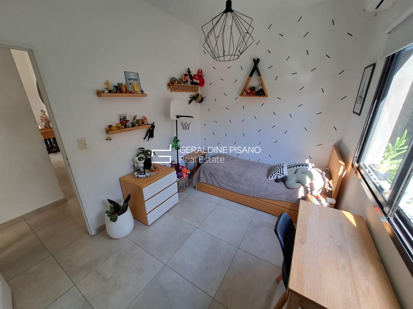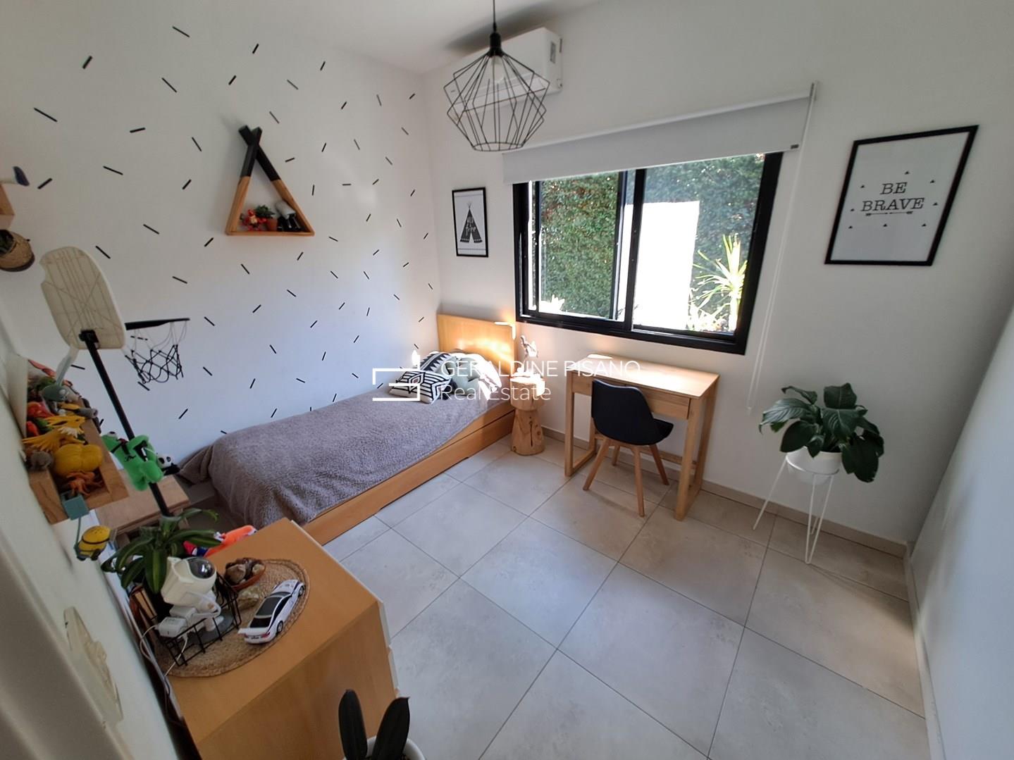 3 dormitorios (1 en suite con vista al jardin + 2 secundarios con baño completo)