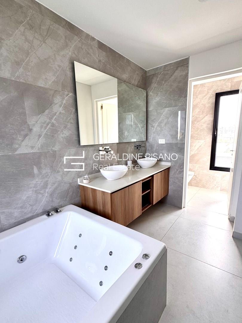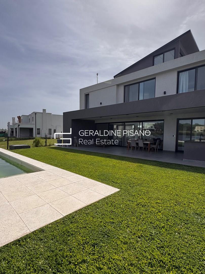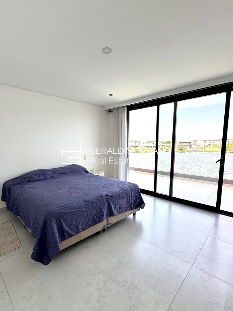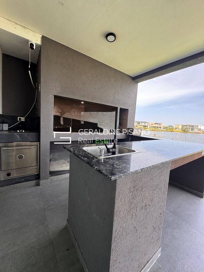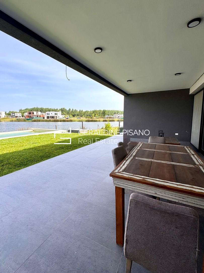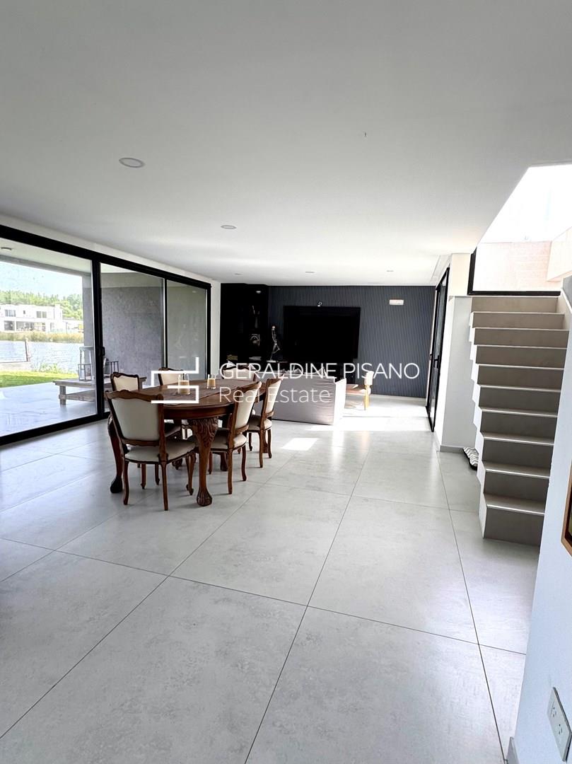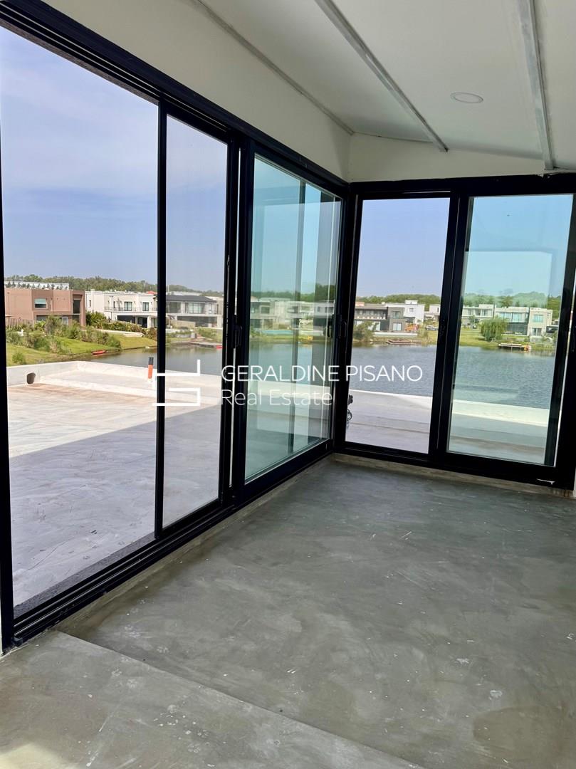 HERMOSA CASA MODERNA AL AGUA EN BARRIO SANTA ANA DE VILLANUEVA PLANTA BAJA: Amplio y super luminoso living comedor mas cocina integrada con isla con imponente vista al jardín y a la laguna. Toilette de recepcion generoso. Habitación de huésped o escritorio amplio en suite. Lavadero con entrada independiente. PLANTA ALTA: Master suite super amplia con dos vestidores, hidromasaje y ducho con doble bacha Espacio para terraza. Dos dormitorios en suite con espacio para vestidores (faltan realizar). TERCER PISO: amplio playroom o gym con imponentes vistas a la laguna. EXTERIOR: Amplia galeria con parrilla, anafe y horno. Espacio para baño de pileta. Piscina con borde infinito. Muelle. Jardín parquizado con riego automático. Entrada para varios autos. Detalles constructivos: - Todas las paredes revestidas en yeso. - Pisos en Porcelanato - Cerramientos de aluminio y mosquiteros - Calefacción central por losa radiante. - Preinstalación de A/A en todos los ambientes. - Muebles de cocina y todos los baños - Interiores de vestidor suite.- Griferías y sanitarios de calidad.- La cocina se entregara con un anafe de mesada, horno y extractor. Santa Ana, es un barrio privado localizado en Villa Nueva, Tigre. Consta de 70 hectáreas donde se emplazan 381 lotes de 600 m2 promedio. Cuenta con dos grandes espejos de agua, lo que hace que gran parte de las unidades tengan salida a alguna de sus lagunas. Vegetación autóctona, joven y en franco desarrollo. Cuenta con pilares de servicio, y redes subterráneas de gas, electricidad, agua y cloacas. El emprendimiento se encuentra a escasas cuadras de VEN Street, el que cuenta con restaurantes, supermercado, heladería, librería y un sinfín de servicios. También a pocos metros del Parque Euka y del Colegio San Isidro Delta School. Estratégicamente ubicado a pocos minutos de Nordelta, su centro comercial, corredor gastronómico y de indumentaria, de sus cines y sus bancos, a la vez que del Sanatorio Las Lomas.-