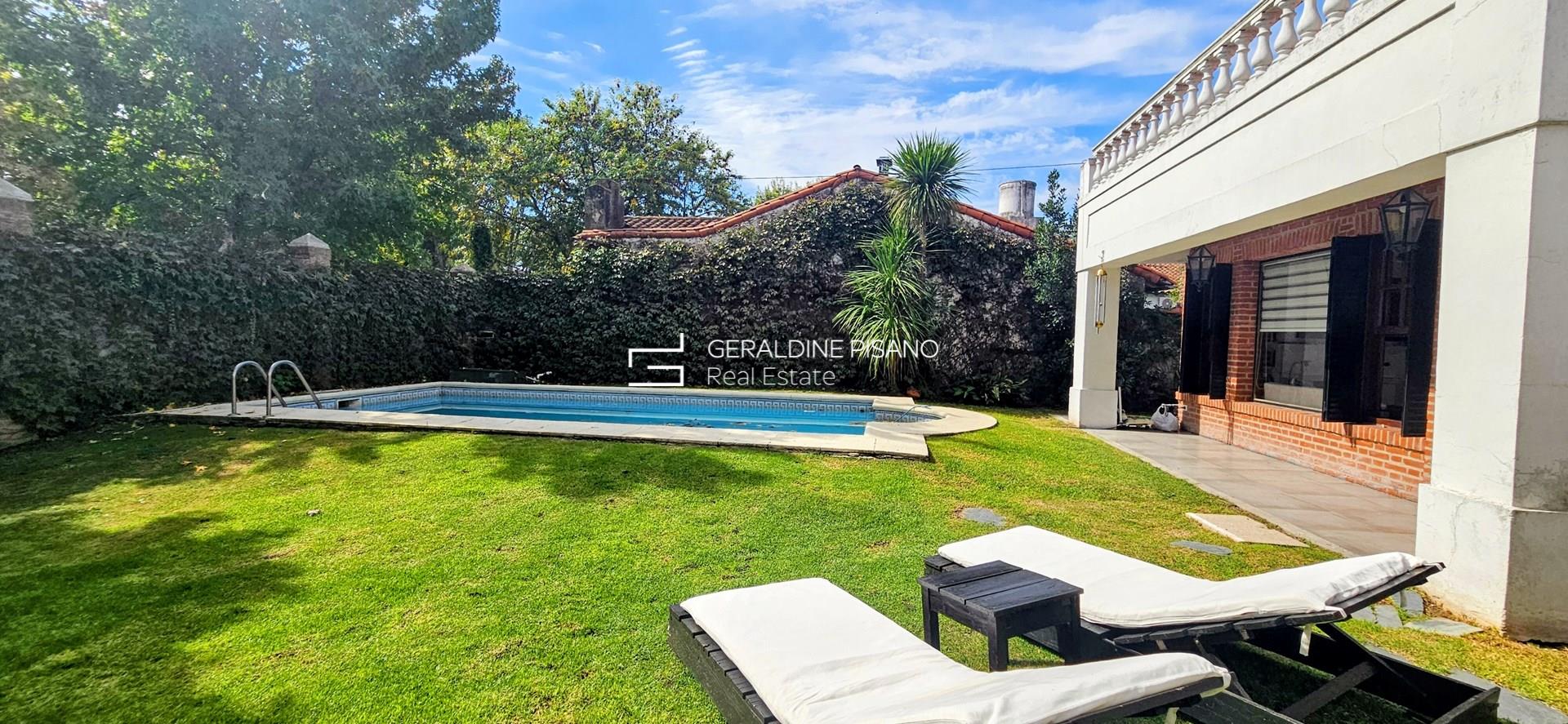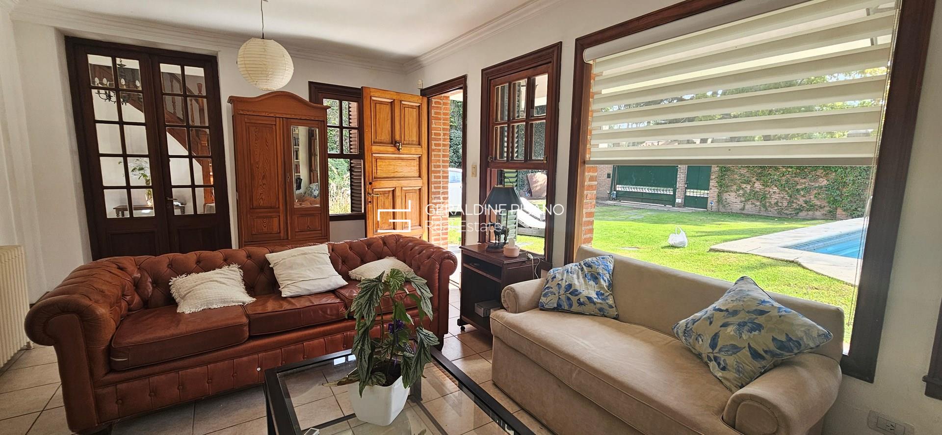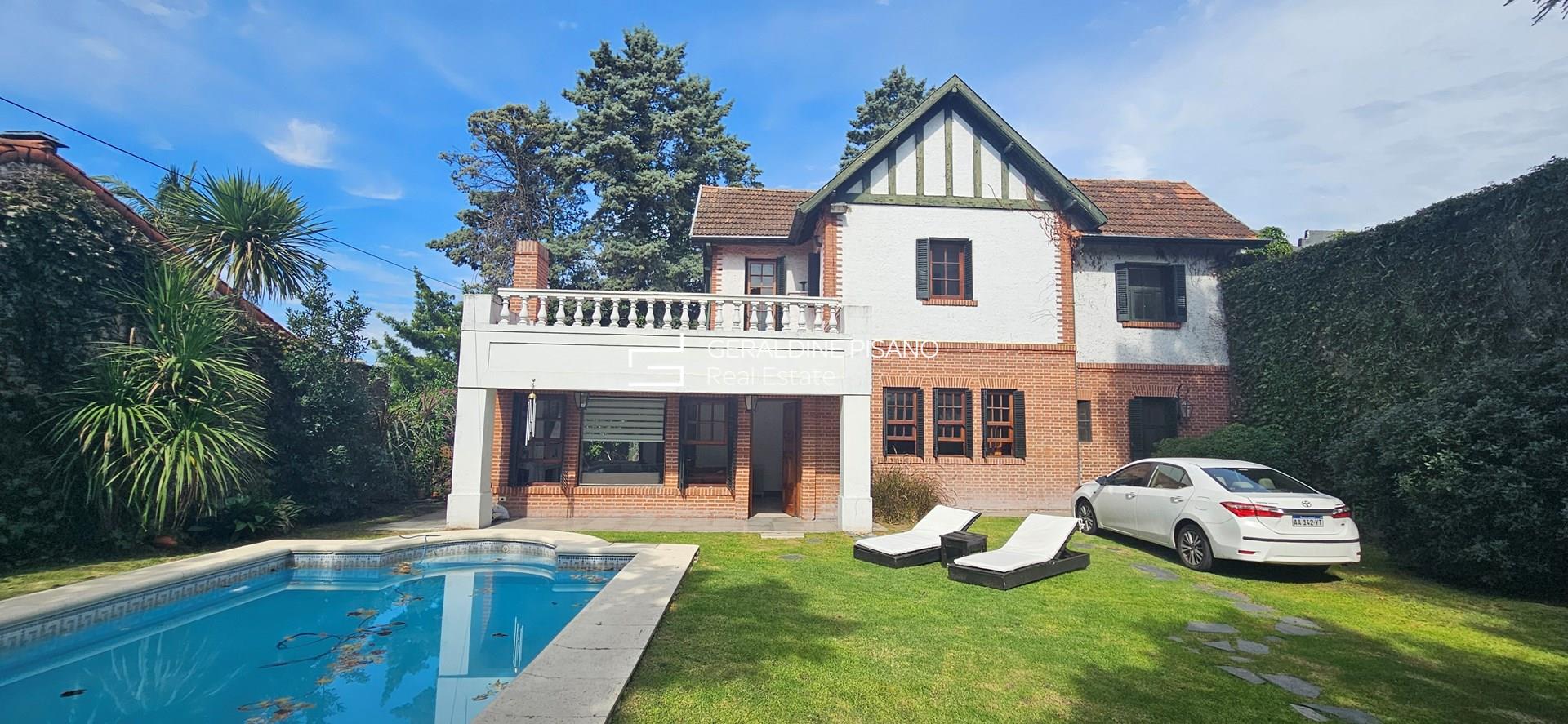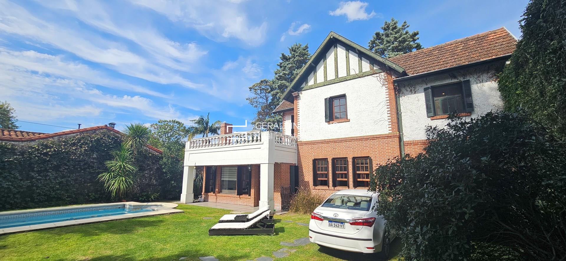 CASA EN VENTA DE CATEGORIA, ESTILO INGLES EN ITUZAINGO SUR DE 4 DORMITORIOS. UNICA! Sobre lote de 600 metros, en zona residencial, sólida propiedad con ampliaciones y reformas que la potencian en funcionalidad y confort. Entrada al playrrom/sala de estar, con hogar de fuego y amplios ventanales con vistas al jardin, luz en todos los ambientes. Living comedor súper amplio con aberturas originales en cedro, pisos de pinotea original pulidos y plastificados Destacada escalera en madera, hacia la planta alta. Gran cocina comedor, super funcional con mobiliario (cocina: "DE OTRO TIEMPO") lavavajillas y barra. Escritorio de muy buen tamaño con triple ventanal Toilette de recepción de mármol Boticino italiano. PA. Gran suite ppal unica con impronta arquitectónica, sector de escritorio, vestidor amplio con herrajes de categoría, y baño compartimentado (bañera, y ducha.) Tres dormitorios, (dos con placard completo muy amplios), uno con salida a terraza con vistas al jardin. Baño completo que comparten los 3 dormitorios. En PB un cuarto mas (opcional huésped o servicio) Lavadero con baño completo totalmente reciclado Parrilla amplia, patio rodeado de arboleda, ideal para gran mesa al aire libre en sombra. Jardin parquizado con piscina con hidro y destacada Araucaria, arboles y flores, que dan un entorno privilegiado Paredón perimetral, Porton eléctrico y lugar para 3 autos. Calefacción por radiadores, AYSA y bomba a 75 mts de prof. Casa que combina estilo, solidez y un toque moderno. Es espaciosa, luminosa, imponente y al mismo tiempo cálida. Esta esperando ser habitada por una nueva familia. Vamos a verla?