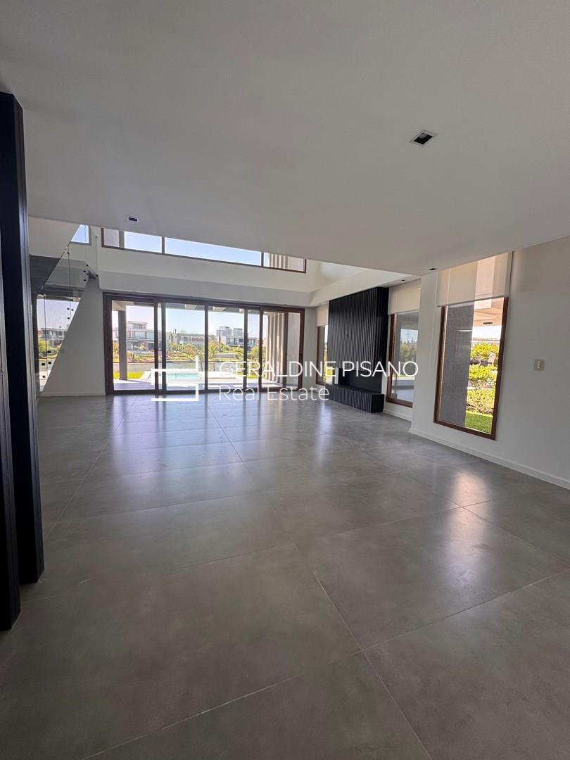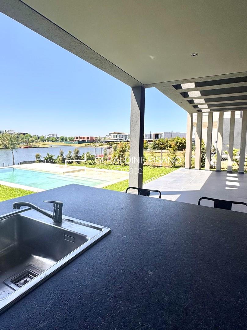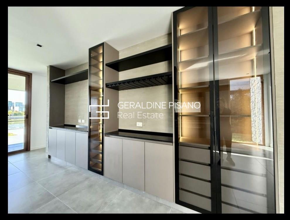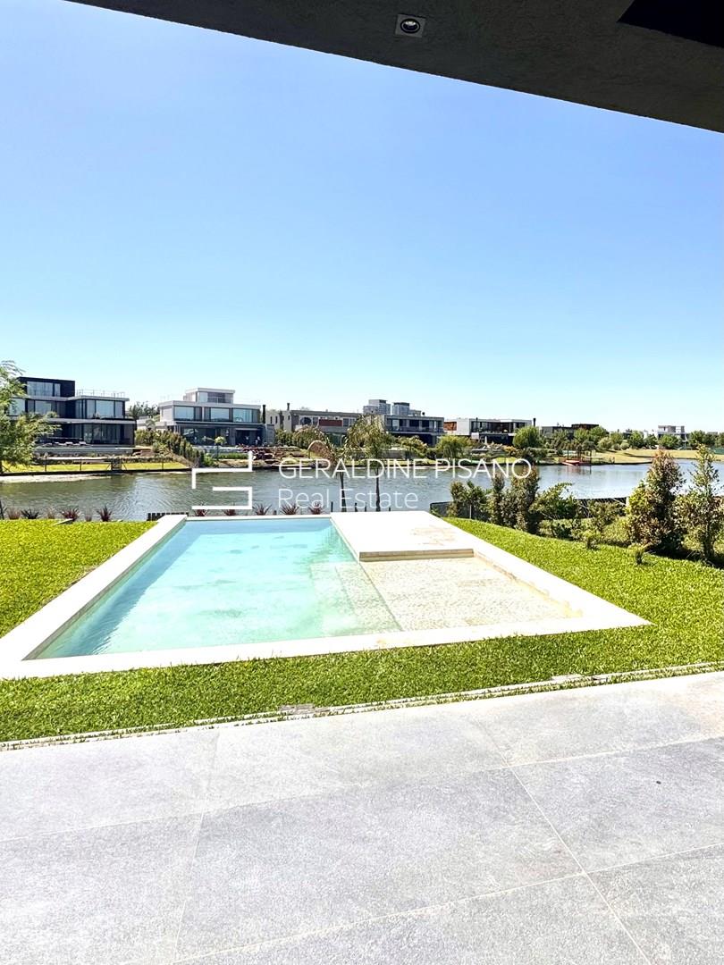 Hermosa e imponente casa con vista al agua en el barrio Virazón de Nordelta. La propiedad se destaca por su diseño moderno, sus espacios amplios y su luminosidad natural. En PLANTA BAJA cuenta con un hall de recepción, toilette con ducha, habitación de huéspedes o escritorio, y un elegante living comedor con doble altura y ventanales que integran el interior con el jardín y la laguna. La cocina, con isla central, comedor diario, mueble de guardado y coffee station, combina funcionalidad y estilo. Además, dispone de lavadero y dependencia de servicio. En PLANTA ALTA, la máster suite ofrece un baño compartimentado y amplio vestidor, acompañada por tres cómodas junior suites con placard. En el tercer piso, un gran playroom con vistas panorámicas y baño completo brinda un espacio ideal para disfrutar en familia. Exterior: galería con parrilla y lavamanos, piscina revestida en mármol travertino con playa húmeda y solárium, amplio jardín parquizado y cochera cubierta para dos autos. Sistema de calefacción por losa radiante y refrigeración por splist marca Electra en todos sus ambientes. Sobre el barrio Virazón: Virazón es uno de los barrios más nuevos y exclusivos de Nordelta. Ofrece un entorno natural privilegiado con salida a la laguna central, amplios espacios verdes y una completa infraestructura deportiva que incluye canchas de tenis, fútbol, sendas peatonales y un moderno Club House. Su ubicación estratégica, cercana a los accesos principales y al Centro Comercial de Nordelta, lo convierte en una opción ideal para quienes buscan tranquilidad, confort y calidad de vida.