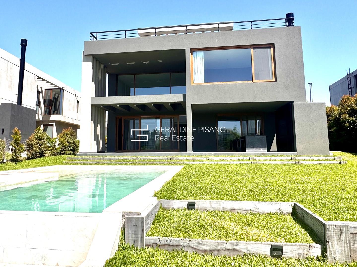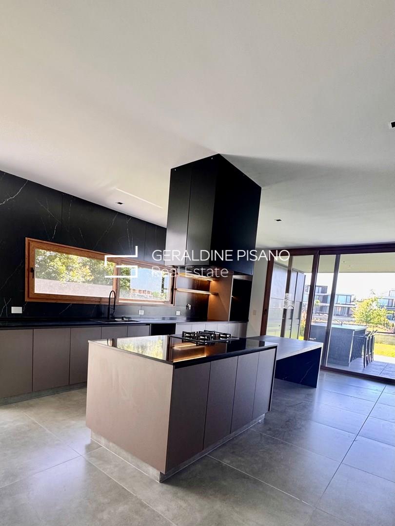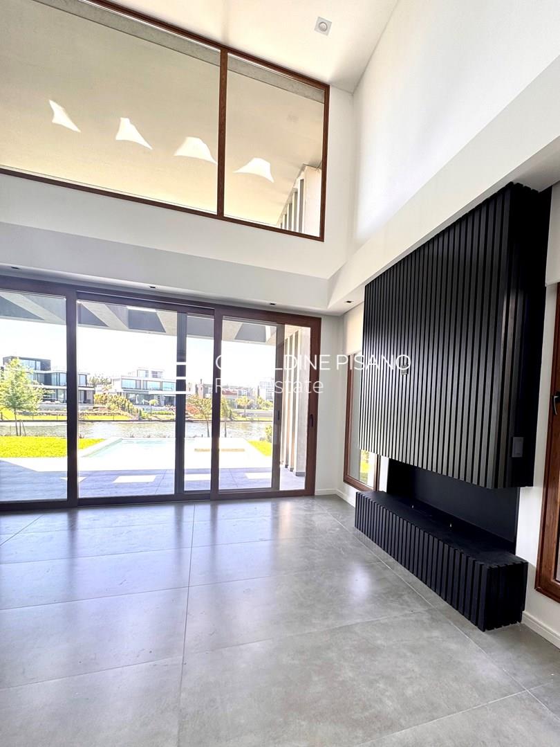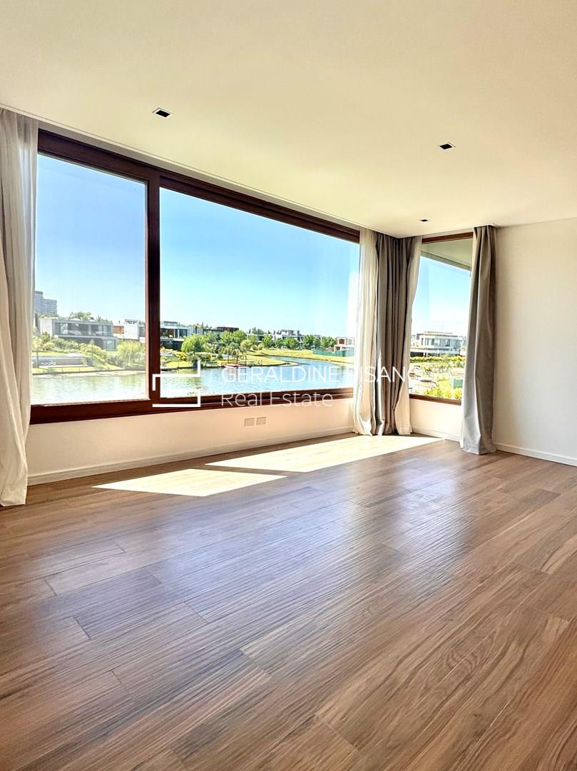 Hermosa e imponente casa con vista al agua en el barrio Virazón de Nordelta. La propiedad se destaca por su diseño moderno, sus espacios amplios y su luminosidad natural. En PLANTA BAJA cuenta con un hall de recepción, toilette con ducha, habitación de huéspedes o escritorio, y un elegante living comedor con doble altura y ventanales que integran el interior con el jardín y la laguna. La cocina, con isla central, comedor diario, mueble de guardado y coffee station, combina funcionalidad y estilo. Además, dispone de lavadero y dependencia de servicio. En PLANTA ALTA, la máster suite ofrece un baño compartimentado y amplio vestidor, acompañada por tres cómodas junior suites con placard. En el tercer piso, un gran playroom con vistas panorámicas y baño completo brinda un espacio ideal para disfrutar en familia. Exterior: galería con parrilla y lavamanos, piscina revestida en mármol travertino con playa húmeda y solárium, amplio jardín parquizado y cochera cubierta para dos autos. Sistema de calefacción por losa radiante y refrigeración por splist marca Electra en todos sus ambientes. Sobre el barrio Virazón: Virazón es uno de los barrios más nuevos y exclusivos de Nordelta. Ofrece un entorno natural privilegiado con salida a la laguna central, amplios espacios verdes y una completa infraestructura deportiva que incluye canchas de tenis, fútbol, sendas peatonales y un moderno Club House. Su ubicación estratégica, cercana a los accesos principales y al Centro Comercial de Nordelta, lo convierte en una opción ideal para quienes buscan tranquilidad, confort y calidad de vida.