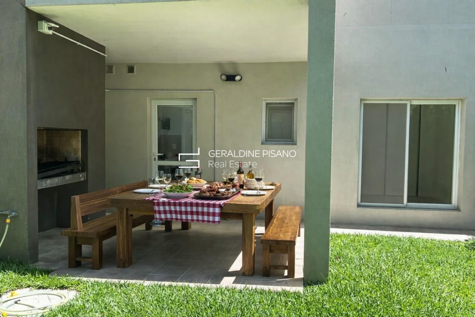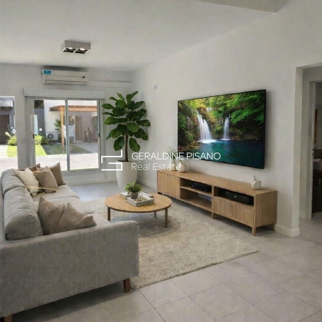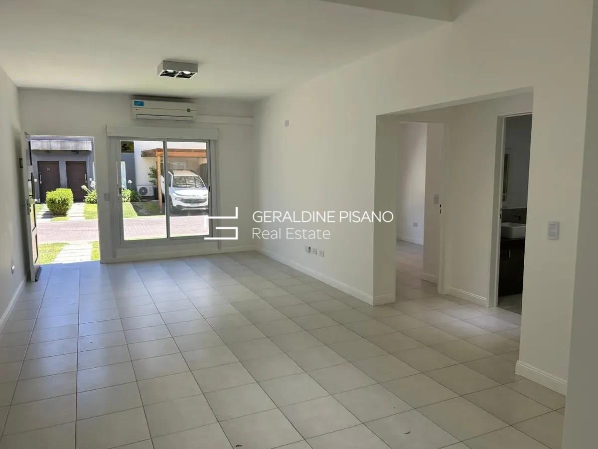DEPARTAMENTO EN VENTA con renta hasta marzo 2027, DE 3 AMBIENTES EN HOMES III, EL PALMAR NORDELTA TIPO CASA EN UNA SOLA PLANTA Y CON JARDIN, EL COMPLEJO PERMITE QUE HAGAS TU PROPIA PISCINA SE INGRESA POR EL LIVING, TOILETTE DE RECEPCION, COCINA SEMI INTEGRADA CON ALACENAS Y BAJO MESADA Y CON SALIDA AL JARDIN, 2 DORMITORIOS CADA UNO CON SU PLACARD QUE COMPARTEN UN BAÑO COMPLETO CON BAÑERA, UNO DE ELLOS DA AL FRENTE Y EL OTRO DA HACIA EL JARDIN, JARDIN PRIVADO CON GALERIA TECHADA Y PARRILLA. COCHERA FIJA SEMICUBIERTA. CALEFACCION POR AIRE ACONDICIONADO FRIO/CALOR, POSEE 3 AIRES UNO EN EL LIVING Y UNO EN CADA DORMITORIO. EL PALMAR SE ENCUENTRA MUY CERCANO A LOS COCLEGIOS MICHAEL HAM, NORTHLANDS Y CARDENAL PIRONIO, CERCANO A LA SALIDA DE BANCALARI POR EL ACCESO DE LA YPF O POR LA CALLE DE LOS COLEGIOS. PARA EL ALQUILER SE ACEPTAN MASCOTAS Y SE ALQUILA SIN MUEBLES. DISPONIBLE YA!